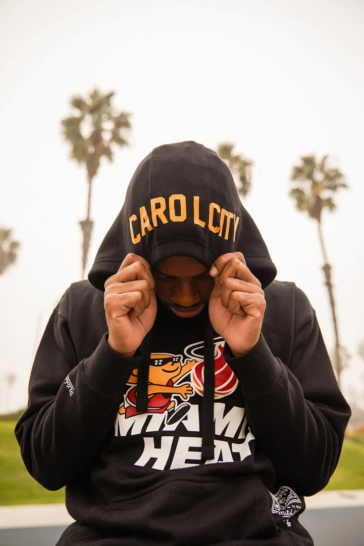 Denzel Curry reimagines the Miami Heat logo in this limited edition collaboration with the NBA, Bleacher Report and Mitchell & Ness.