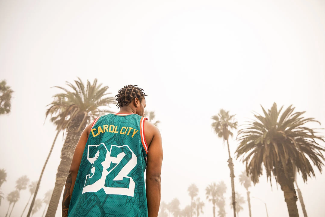 Denzel Curry reimagines the Miami Heat logo in this limited edition collaboration with the NBA, Bleacher Report and Mitchell & Ness.