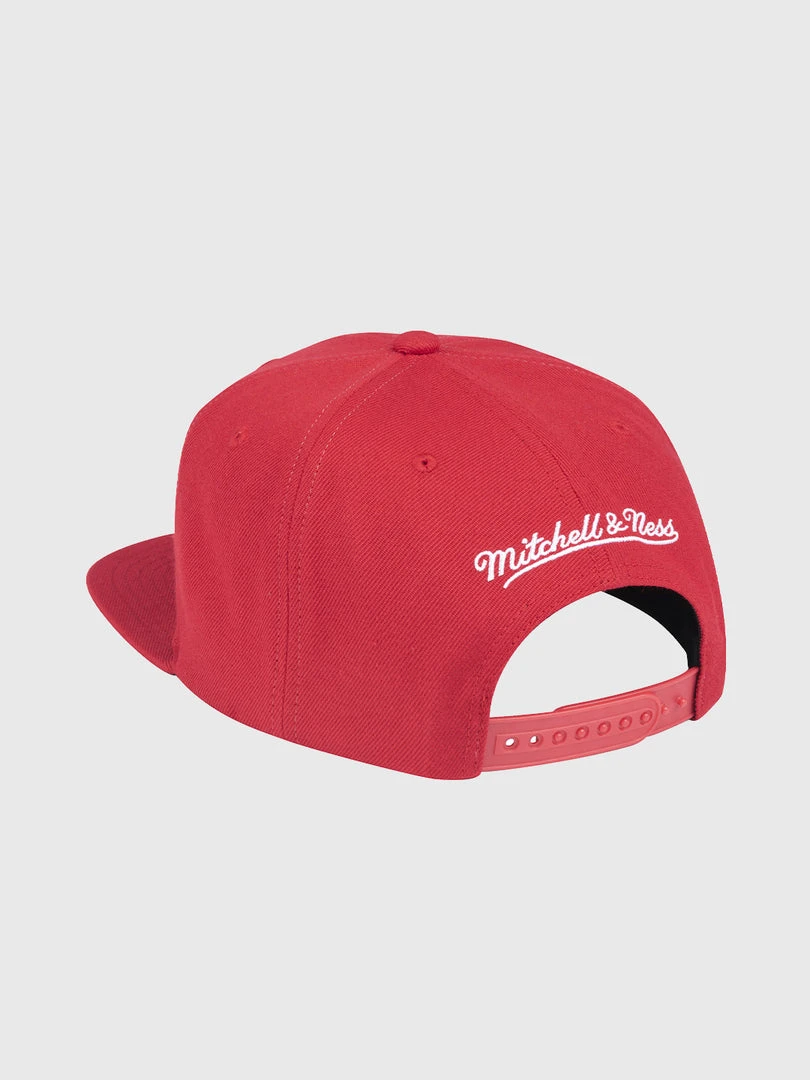 This hat has a wool blend crown and top visor, contrast black undervisor, raised and flat front embroidery with twill applique, flat side embroidery, custom trims and a snap closure.