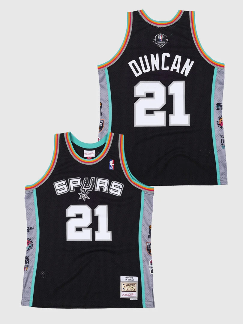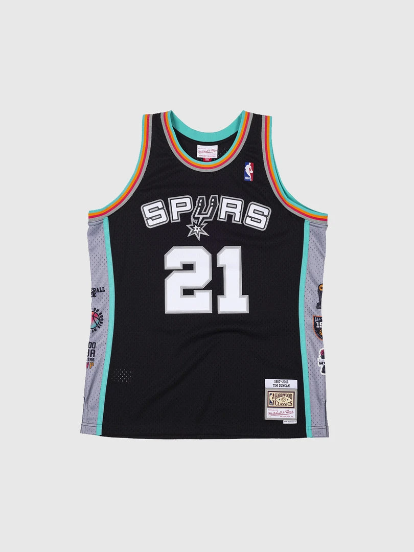 Official, commemorative Tim Duncan Hardwood Classics Swingman jersey from Mitchell & Ness. Forever iconic.