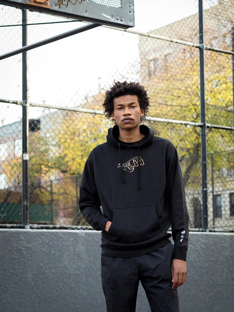 - This hoodie is available in unisex sizing and is made with 80% cotton and 20% polyester fleece.