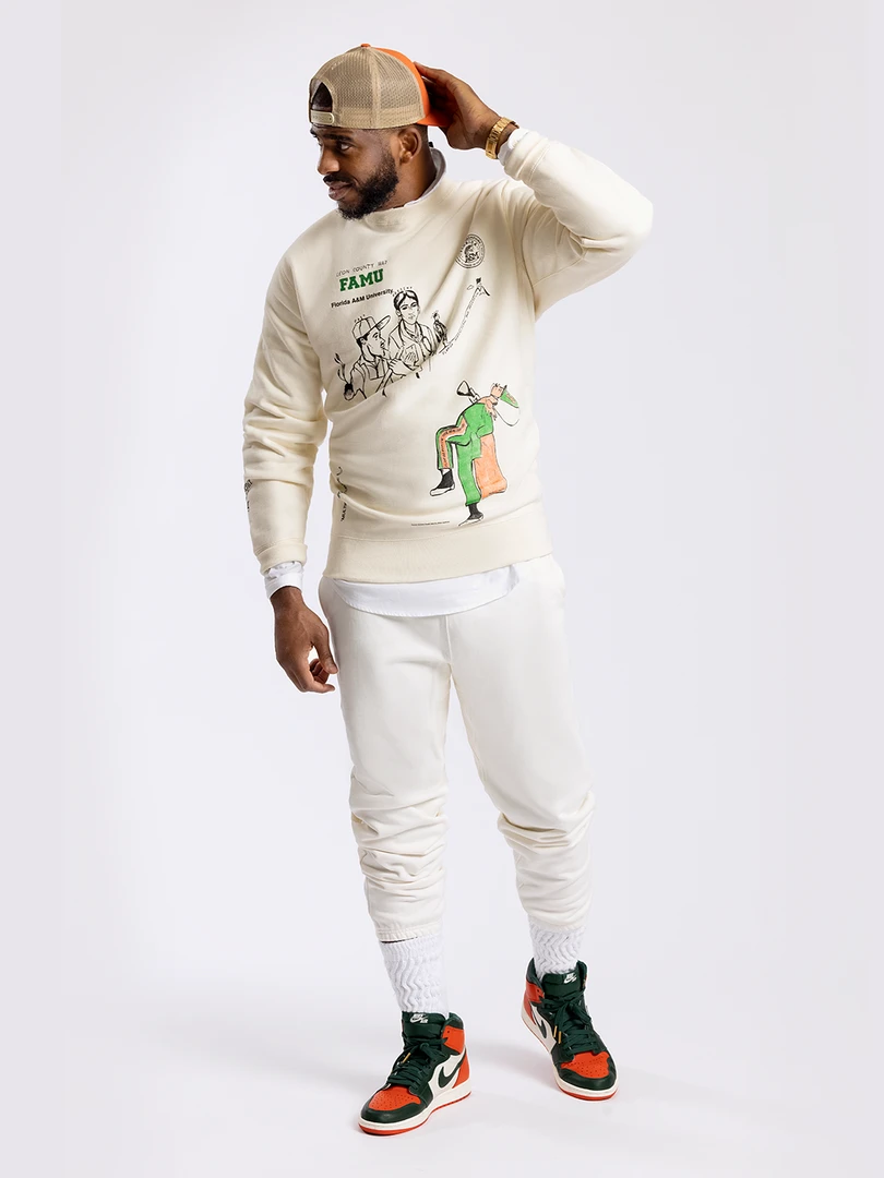 “The role HBCU schools played as part of our fabric as African Americans is vital to the empowerment of our brothers and sisters. It was important to me to participate in this collection for many reasons, Ryan and I being chosen to design for FAMU was the icing on the cake because we already knew so much about the institution. The facts we did learn however strengthened our admiration for the school and its purpose for our people. This was an honor to contribute at this high level and also represent the many men and women attending and graduated from FAMU. Hope these pieces make you proud.” – Michael Nicholas, DIEM
